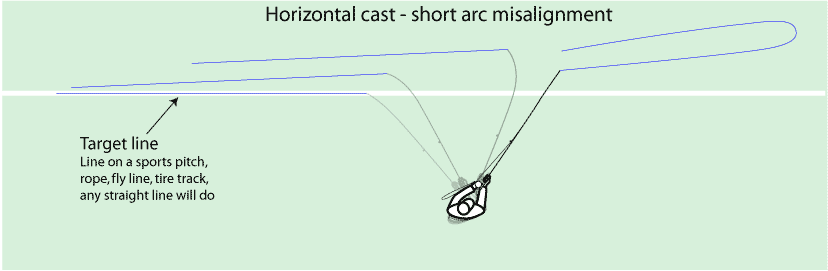 Since you mentioned the cracked wrist wide arc here it is and also a short arc in case these sketches are helpful. All three conditions can are commonly observed as students practice, inevitably there is some over correction.